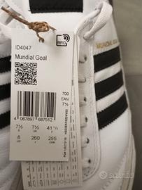 Vendo bellissime scarpe da calcetto Adidas, ideali per superfici indoor, modello Mundial Goal, MAI utilizzate, con cartellino e scatola originale. Numero 41 e 1/3. Pagate 140 euro.