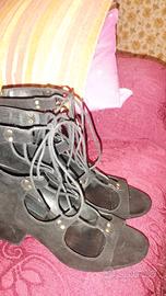 marca "Zara Basic", n.38, messe solo a casa un paio di volte, mi stanno piccole. stivaletto aperto, tacco comodo. molto belle. adatte per foto e spettacoli. nere in camoscio.