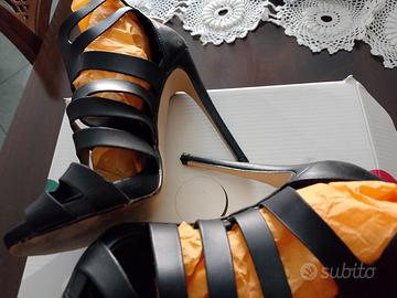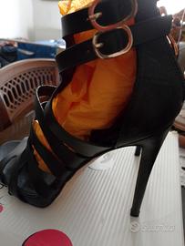 Vendo per inutilizzo scarpe nere adatte a cerimonie o serate , con tacco ( misure in foto) e fasce che lasciano intravedere il piede. Hanno uno stile classico adatto ad indossare qualsiasi tipo di abbigliamento. Numero 37.