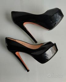 Scarpe nere da donna Carlo Pazolini, N 37 , tacco 13 cm, indossate una sola volta ma con leggere escoriazioni laterali, non visibili a colpo d'occhio, a causa di una caduta. Osservare bene le foto.