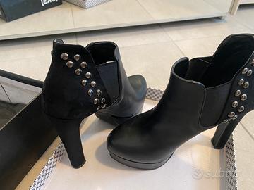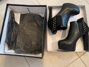 Scarpe tronchetto nere donna N 36 Tacco cm 13 Plateau 3cm Marca eks ritmo shoes