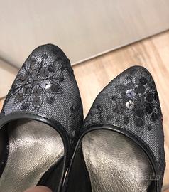 Scarpe nere in paillettes e pizzo