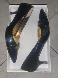 Scarpe nere lucide decolte con il tacco