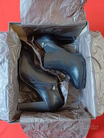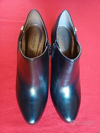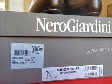 Scarpe accollate nere Nero Giardini originali Made in Italy Nuove, mai indossate, come si può vedere dalle foto della suola immacolata. Sono ancora nella loro scatola originale. Nr 37 - Tacco 10 ideale per slanciare la figura pur offrendo stabilità. Pregiata pelle nappa con finitura liscia. Cerniera laterale con cursore logato, piccolo inserto elasticizzato e iconico stemma circolare dorato Nero Giardini vicino alla caviglia. Stile "ankle boot" versatile, adatto sia per outfit formali da ufficio che per look serali più ricercati.