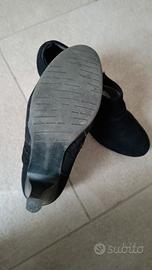 Scarpe nere scamosciate con tacco n. 37 marca Marco Tozzi. In buone condizioni. Hanno la suola in gomma. Leggermente segnate in punta come evidenziato dall'ultima foto. Ritiro gratuito a Cornaredo.