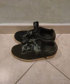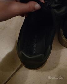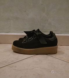 Vendo scarpe nere da ginnastica con plateau e lacci in raso.