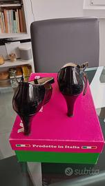 Scarpe nere con cinturino ad incrocio, modello scarpe da ballo.