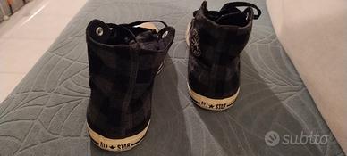 Scarpe CONVERSE ALL STAR intramontabili - un mito - una generazione Prezzo affare 25 euro Unisex sia per uomo che per donna. ↘️ In buonissimo stato, usate pochissimo e ↘️ vedi anche la foto 2 etichetta e marca sul plantare: - numero taglia 44,5 - alte fino alla caviglia - colore: nero grigio a trama scozzese 👍🏼 Ok spedizione con TuttoSubito + disponibilissimo anche al ritiro di persona con supervisione.