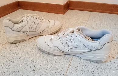 Vendo causa inutilizzo scarpe New Balance 550, colore bianco, taglia 42.5, lunghezza piede 27 cm, materiale pelle, buone condizioni, presenta segni e usure di utilizzo, astenersi perditempo.