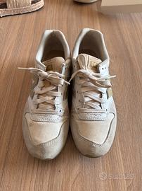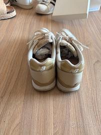 Scarpe da donna New Balance in pelle scamosciata beige. Ideali per running, ginnastica o camminata.