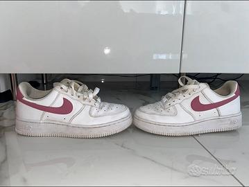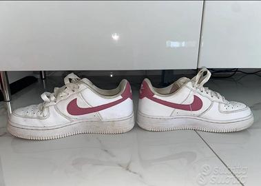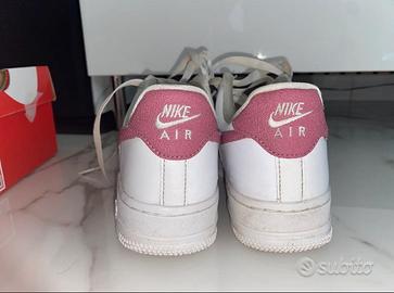 Vendo queste scarpe Air Force 1 per cambio taglia. Avrebbero bisogno di essere trattate con prodotti appositi per la similpelle, essendo bianche e usate, ma per il resto non presentano alcun difetto e sono come nuove. Spedisco in scatola originale Nike come da foto.