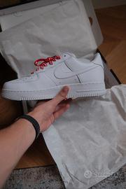 La versione bianca delle Nike Air Force 1 Low Supreme è realizzata in pelle naturale. Questa scarpa bianca è comoda e versatile, traspirante e confortevole. Le scarpe sono nuove di zecca e vengono fornite con lacci e scatola. Se la taglia non è corretta, contattaci.