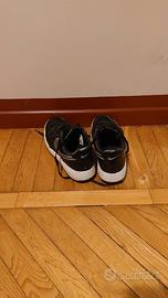Scarpe Nike Air Force 1 in pelle nera con dettagli argento. - Design classico. - Logo Nike sul lato