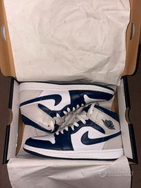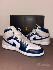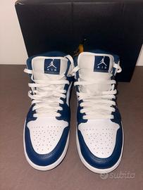 Vendo Scarpe Nike Air Jordan 1 Mid, numero 42 colore Blu,bianco e beige Indossate due volte in ottime condizioni