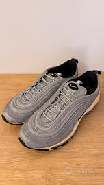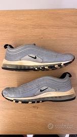 Scarpe Nike Air Max ‘97 usate in buone condizioni (la suola è un po’ ingiallita e ci sono delle macchiette sulla parte catarifrangente non troppo visibili). Taglia 45, vanno bene anche per chi ha un 44, come me. Per altre info non esitate a scrivermi (prezzo di acquisto €180).