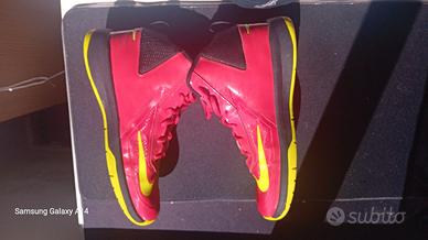 Vendo scarpe da basket Nike hustle 7 originali colore rosso con dettagli giallo fluo.