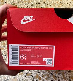 scarpe Nike Court Borough Low Recraft (GS), da ginnastica, per donna, con una vivace combinazione di colori fucsia e bianco. - Design sportivo e alla moda. - Tomaia in pelle e materiale sintetico. - Chiusura con lacci bianchi. - Suola in gomma resistente. - Numero EU 39, UK 6, USA 7,5