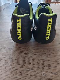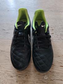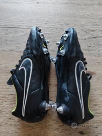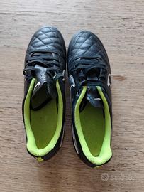 Vendo scarpe da calcio Nike Tiempo, numero 39, colore nero e verde. Sono in buone condizioni, mostrano lievi segni di usura.