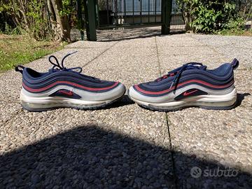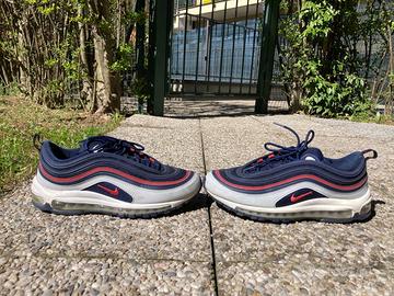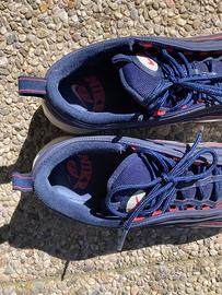 Nike Air Max 97 – Condizioni Ottime Vendo un paio di Nike Air Max 97 in ottime condizioni, taglia 43. Dettagli:Modello: Nike Air Max 97 - Taglia: 43 (EU) - Colore: Blu navy con dettagli rossi e grigi - Materiali: Tomaia in pelle scamosciata, mesh e pelle liscia, suola in gomma con camera d'aria visibile - Condizioni: Ottime, usate poco e con cura. Caratteristiche: - Comfort eccezionale grazie alla tecnologia Air Max - Stile versatile, perfetto per ogni occasione
