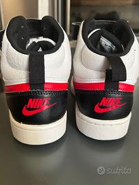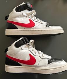 Scarpe da ginnastica Nike a collo alto, bianche e rosse, usate poco con scatola originale