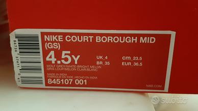 Vendo scarpe Nike Court Borough Mid, praticamente quasi nuove, utilizzate una sola volta, misura 36 e 1/2.Complete di confezione originale.