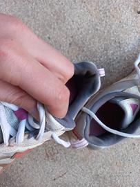 Scarpe da ginnastica Nike in stile vintage. - Tomaia in mesh e pelle. - Dettagli color pesca e rosa. - Suola in gomma. Rovinate come in foto ma nessun buco . Riparabile