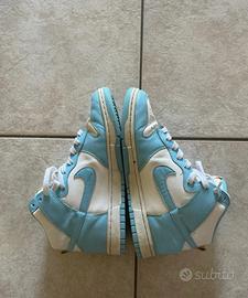 Vendo un paio di scarpe Nike Dunk High Retro. Sono in ottime condizioni, con una colorazione azzurra e bianca.
