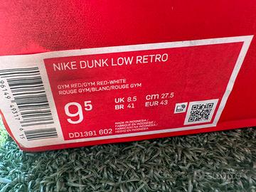 Scarpe Nike Dunk Low Retro gym red/gym red-white,nuove mai usate NR 43