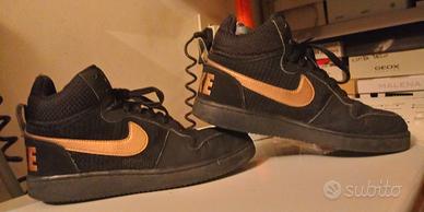 Vendo scarpe da ginnastica Nike scamosciate nere con logo dorato, N.ro 39