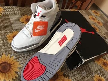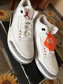 Scarpe da uomo Nike Air Jordan 3 White Cement reimagined (2023), bianche con rifiniture in grigio NUOVE modello: DN3707-100 aggiudicate tramite ruffle quindi in edizione limitata in confezione originale numero 44EU. Prezzo 265 euro.