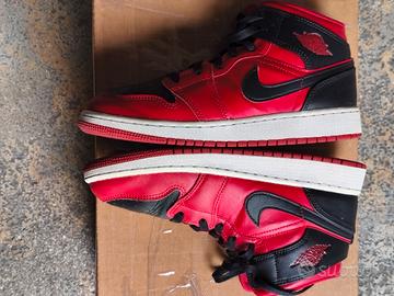 Vendo queste scarpe della Nike, le Jordan Mid 1 di colore Rosso e Nero. Sono usate, ma in ottime condizioni, come da foto, non hanno rotture, scalfitture, abrasioni o scuciture, anche il fondo in gomma non è per nulla consumato, ma ancora ottimo. Sono della taglia 38, adatte per uomo, donna o bambino, sia maschietto che femminuccia. Non ho più la scatola originale, ma vi saranno spedite in un altra scatola di scarpe.
