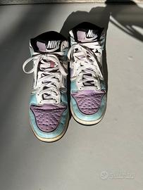 Nike Jordan personalizzate bianche celesti e lilla. usate poche volte Vendo per cambio numero.