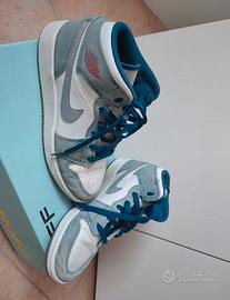 scarpe Nike Jordan celesti con ricambio lacci rossi