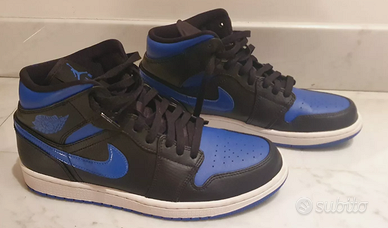 Numero di scarpa EU 43 Modello Air Jordan 1 Mid - Black Hyper Royal 2021 Usate solo una volta, praticamente nuove