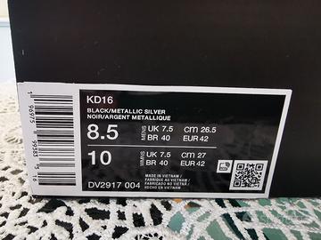 Vendesi per mancato utilizzo scarpe Nike KD16 Slim Reaper Black Metallic Silver usate solo una volta in palestra. con scatola originale pari al nuovo. Prezzo di acquisto 159 eur TG 42