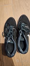 Scarpe Nike modello da running/allenamento caratterizzate da una tomaia in mesh nera, allacciatura tono su tono, uno Swoosh (il logo Nike) bianco sui lati e una suola bianca.