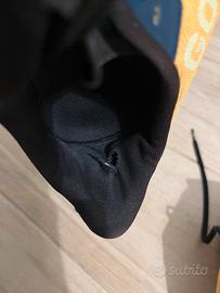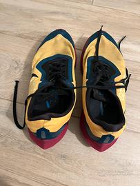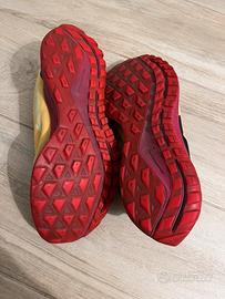 Vendo scarpe sneakers da trail running originali Nike Pegasus 36 Trail Gore Tex di colori giallo, blu e rosso in buone condizioni generali e numero 45. Difetti come da foto