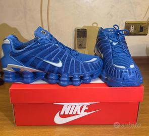 Scarpe Nike Shox TL in una vivace tonalita di blu. Il design iconico Shox offre un look distintivo.