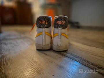 Scarpe nike alte con il simbolo arancione.