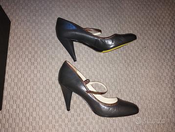 Décolleté Scarpe eleganti da donna modello Mary Jane , originali Paul Smith con tacchi alti 9 cm colore grigio scuro nero con il bordo marrone