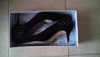 Vendo questo paio di scarpe eleganti con il tacco. Sono nere e borchiate. Non sono mai state usate. Il prezzo stracciato è di 10 euro. La consegna si effettua nella zona di Merate.