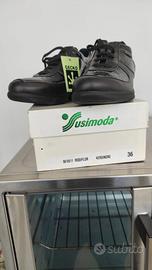 Occasione imperdibile! Vendo splendide scarpe Susimoda Walksan, il top del comfort e della qualità Made in Italy. ✅ CONDIZIONI: Nuove, mai indossate, con scatola originale e cartellini. ✅ TECNOLOGIA GECKO®: Suola brevettata ad altissima aderenza (grip pazzesco!) e massima stabilità. ✅ STILE & QUALITÀ: Vera pelle nera con raffinati inserti in vernice effetto cracké. Eleganti e comodissime. ✅ PERCHÈ ACQUISTARLE: Ideali per chi cerca una scarpa che non stanchi le gambe, perfetta anche per uso professionale/sanitario. Materiali di pregio: Vera pelle morbida e inserti in vernice lavorata. Suola tecnica brevettata Gecko ad alta aderenza. 💰 Prezzo in negozio: 95€