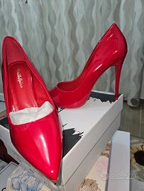 Scarpe décolleté da donna, colore rosso lucido, con tacco a spillo alto. Eleganti e femminili, perfette per eventi, feste o serate +