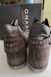 Vendo scarpe da donna nuive della marca Onako, numero 41,in vera pelle, colore marrone fango,con zeppa interna di 7 cm.