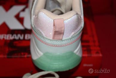 * Design: Stile runner/urban con una suola a contrasto e dettagli glitterati iridiscenti che cambiano colore con la luce (rosa, azzurro, verde chiaro).