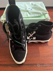 Vendo Off-White alte nere con scatola e sacca per inutilizzo. Sono praticamente nuove, usate una decina di volte… comprate in negozio a 350 euro.