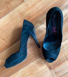 Scarpe in camoscio nero open toe Mauro Gigli taglia 38 tacco alto