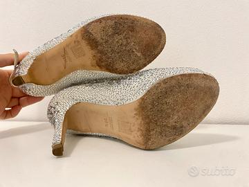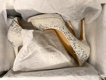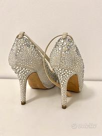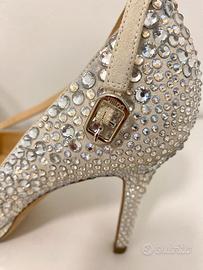 Splendida décolleté tempestata di Swarovski, pezzo originale del calzaturificio Ballin. Taglia 36,5, tacco 10cm, con laccetto, colore panna chiaro. Usate una sola volta ad un matrimonio e poi lasciate in armadio. Prezzo trattabile, preciso che non sono scarpe di outlet.