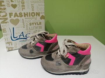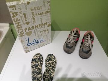 Scarpe ortopediche n 24 grigio e fucsia marca Laco. Suola in cuoio. Suoletta estraibile colorata. Scatola
