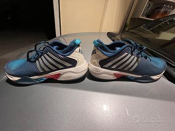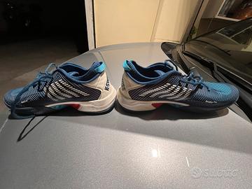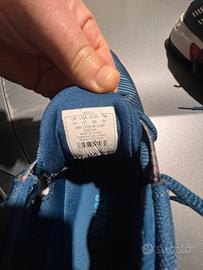 Taglia 46 (30 cm) uomo. Utilizzate solo una volta perché per il mio piede piatto e largo hanno una calzata scomoda per me. Le ho fotografate sulla macchina per non appoggiarle a terra.